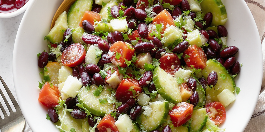 In a large bowl combine vinaigrette, beans, cumin, salt and pepper to taste. Set aside.
