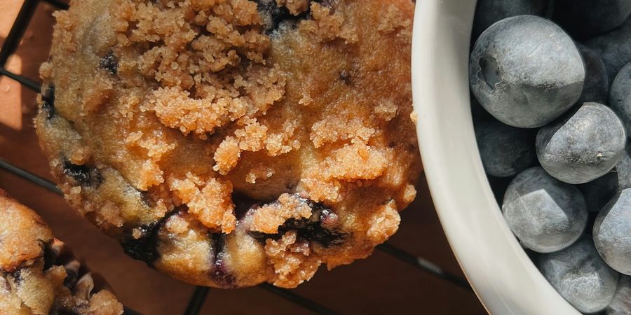 A simple cinnamon topping finishes off these light and fluffy classic blueberry muffins.
